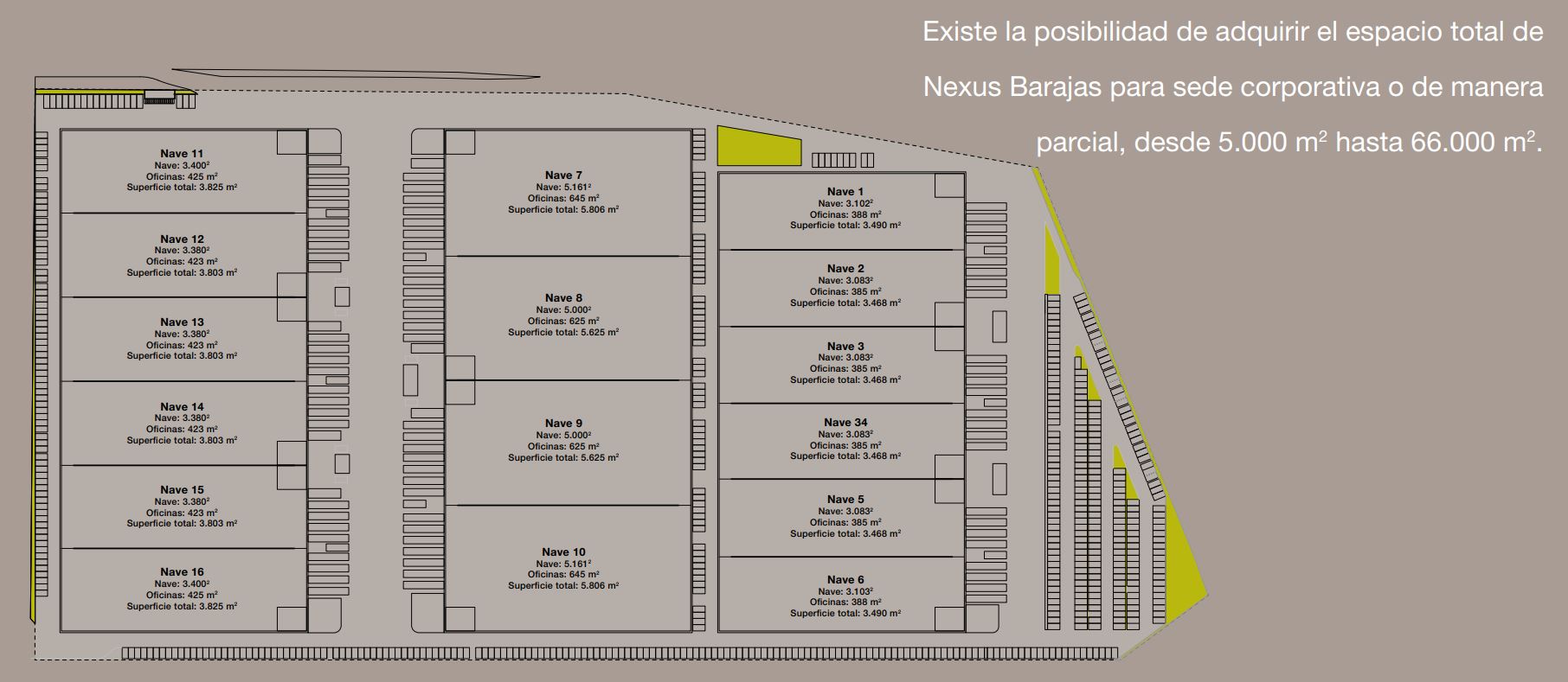 Más de 66.000m² diseñados para satisfacer la demanda de empresas que busquen ubicación estratégica en el principal eje logístico de Madrid. Nexus Barajas se construye con los más altos estándares de calidad, aspirando a conseguir la certificación BREEAM Excellent, apostando por la sostenibilidad, integrando espacios verdes y entornos de trabajo orientados al bienestar.