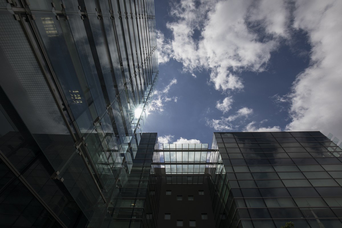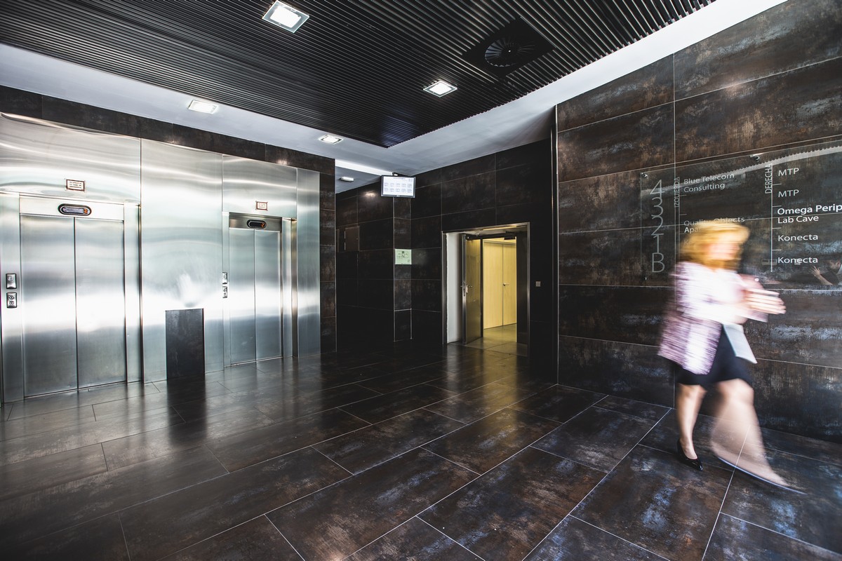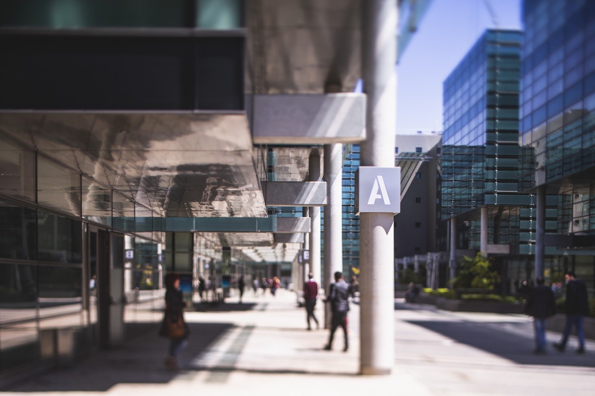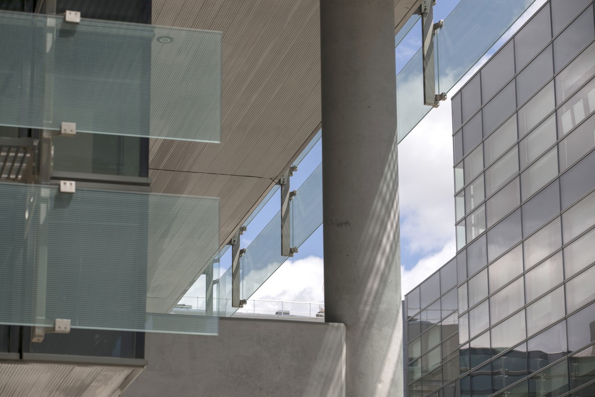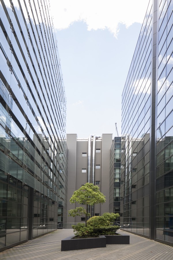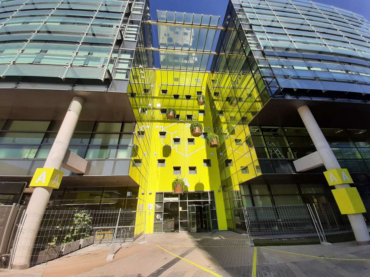 El complejo se compone de nueve edificios con una impactante estética de fachada muro cortina, obra del prestigioso estudio Federico Echeverría.