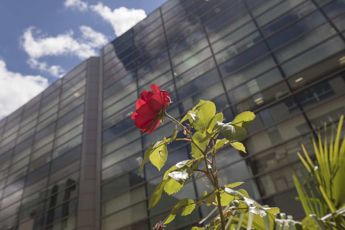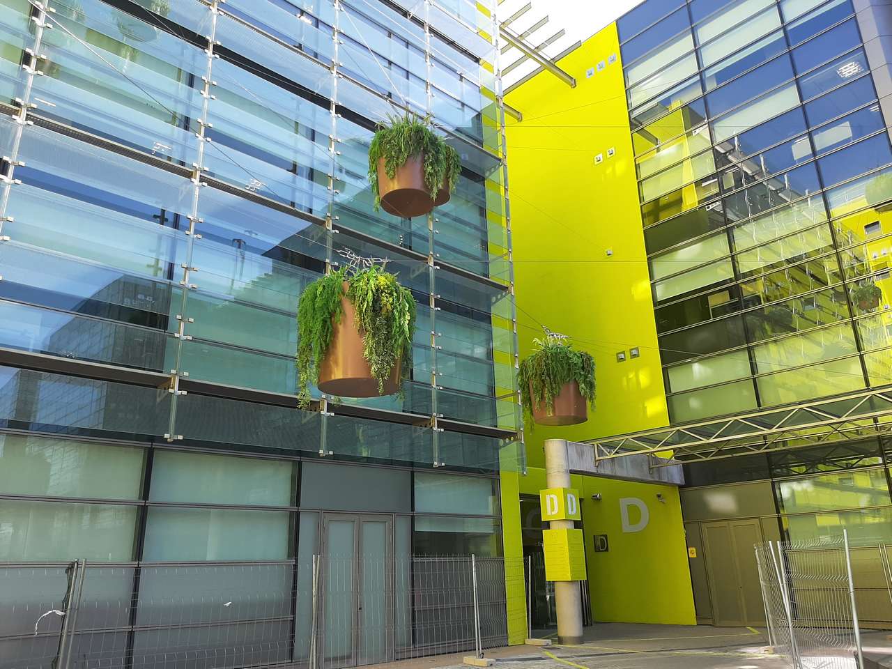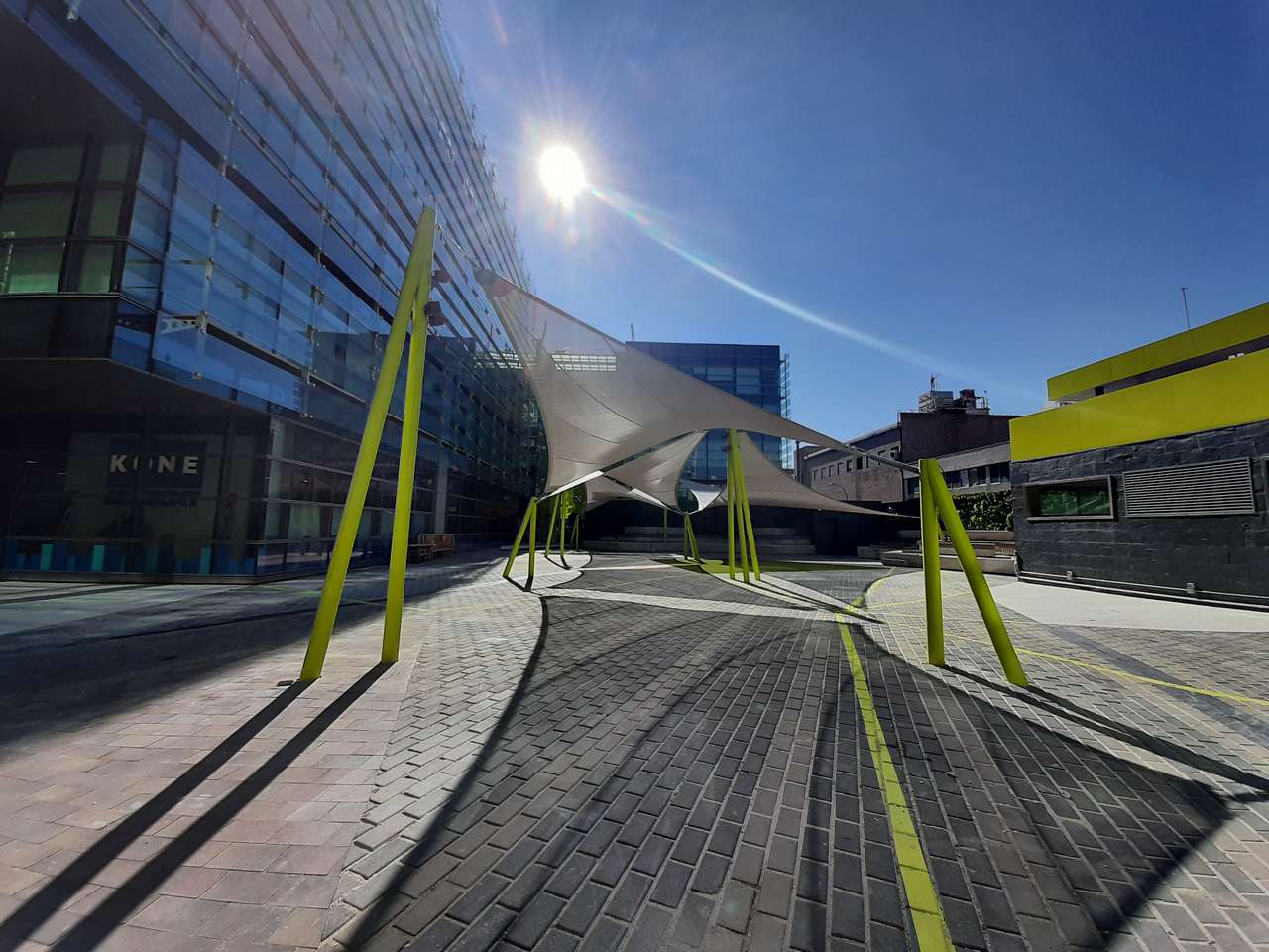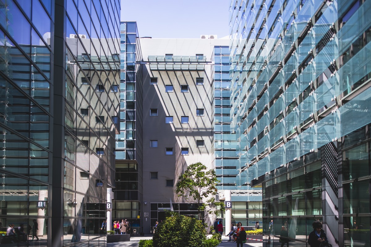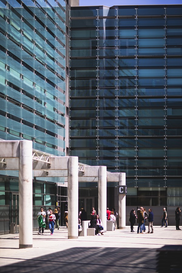 El complejo se compone de nueve edificios con una impactante estética de fachada muro cortina, obra del prestigioso estudio Federico Echeverría.